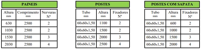 • Postes produzidos em tubo quadrado de chapa de aço galvanizada.